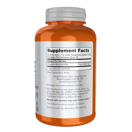 研究表明,補充肌酸有助於維持現有肌肉組織,支持除脂肪體重的生長和發育,並在短時間劇烈運動中提升最佳表現。 NOW® 一水肌酸不含任何添加物或防腐劑。